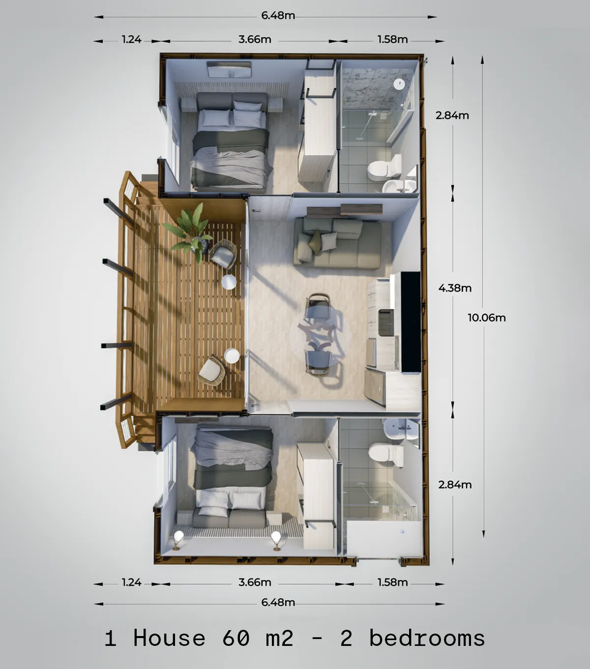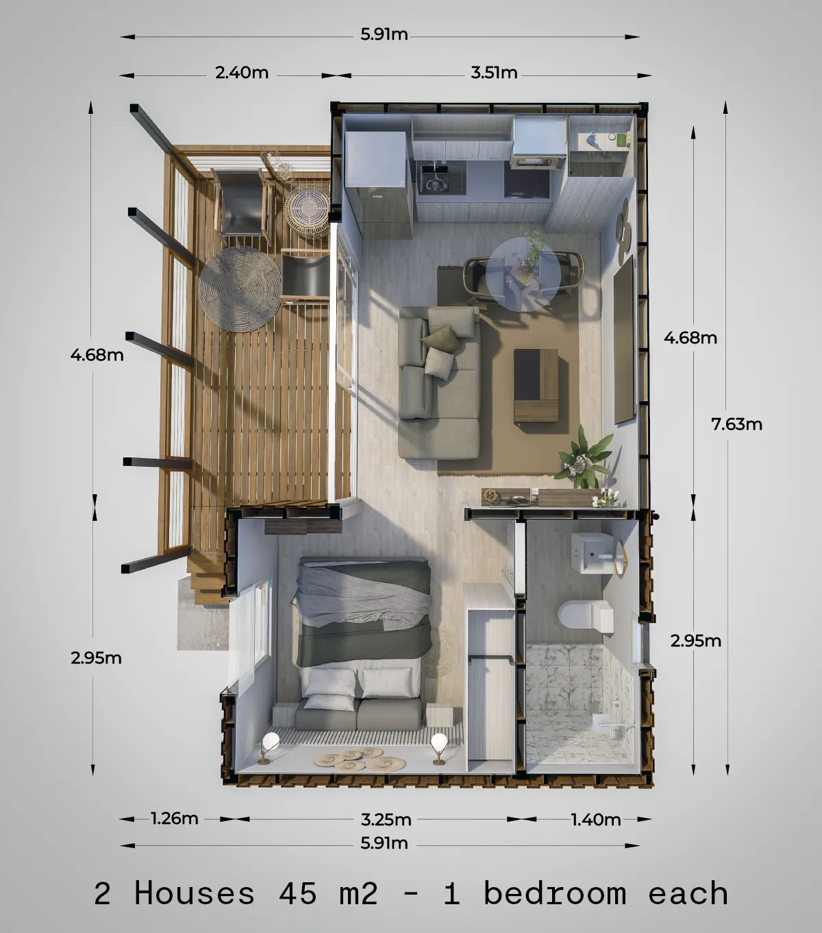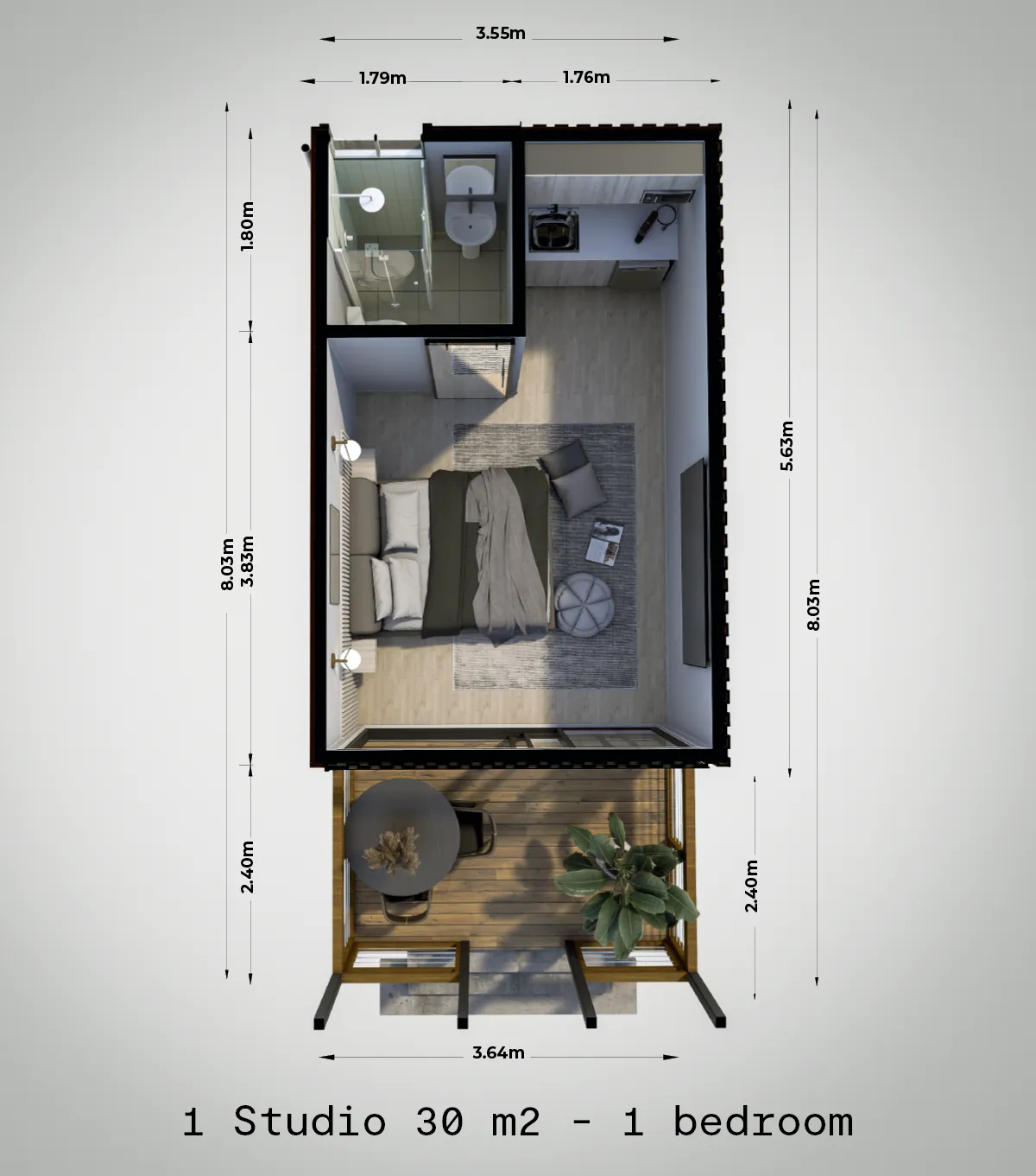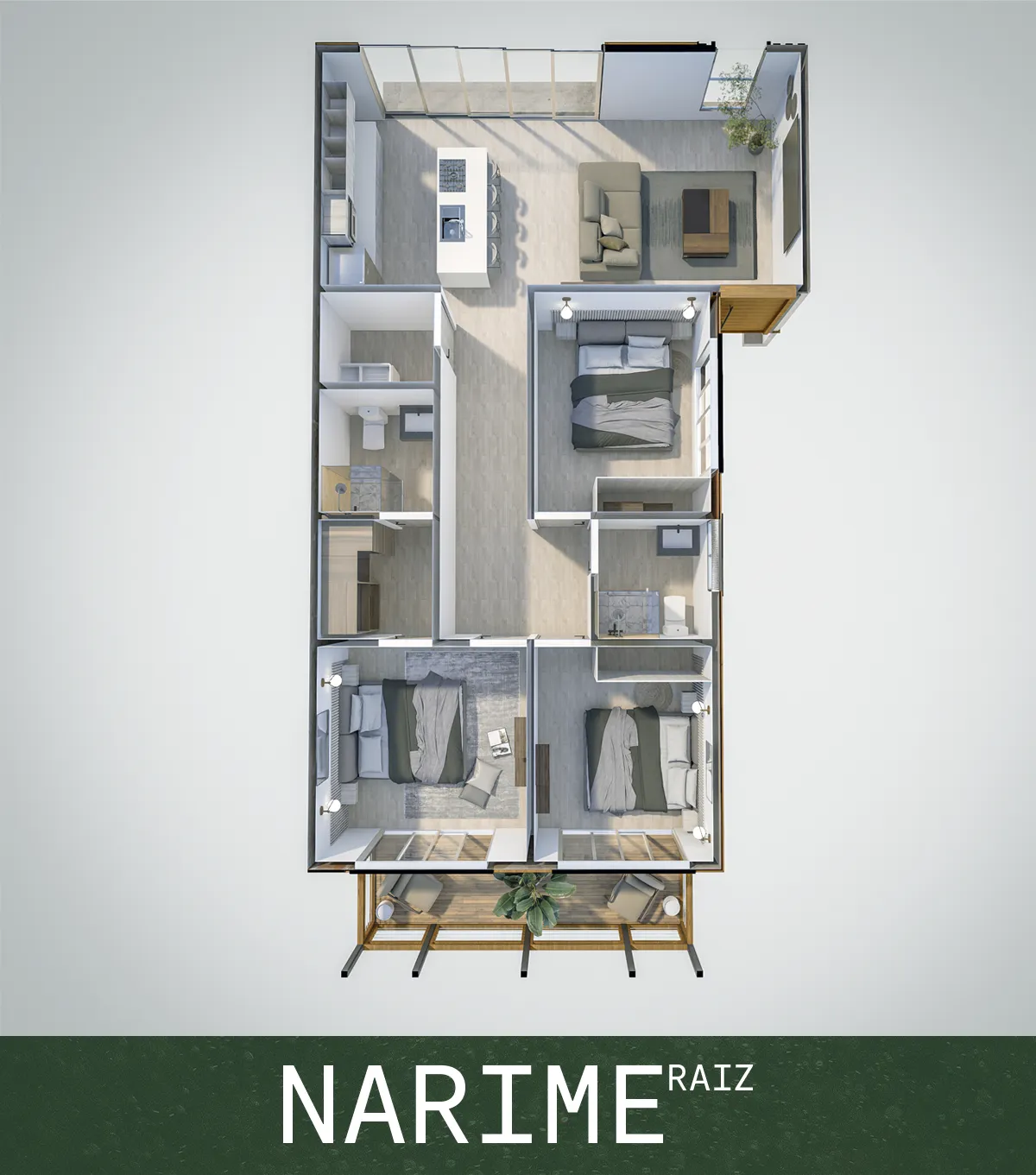 Like a tree spreading its roots blending with its surroundings, this option offers the opportunity of having a TWO-bedroom home and a separate perfect Studio talking the same language and co-existing in perfect Harmony.